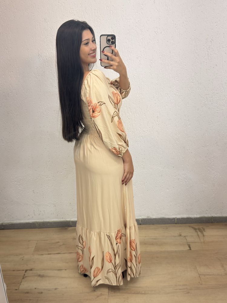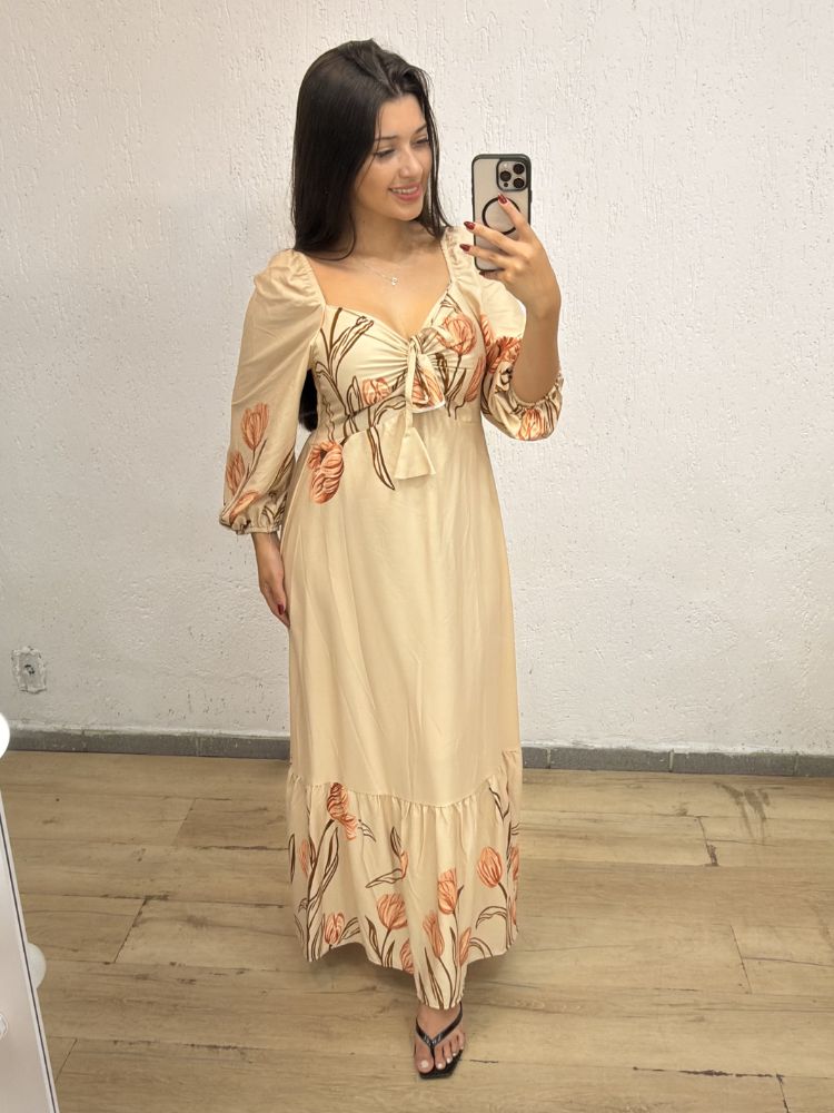 Vestido Decote grapeado na frente com Elastex nas costas, manga 3/4, confeccionado em viscose leve e confortável, perfeito para o dia a dia. Possui modelagem ampla que se adapta ao corpo, garantindo liberdade de movimento e um caimento fluido e elegante. Ideal para quem busca praticidade sem abrir mão do estilo.